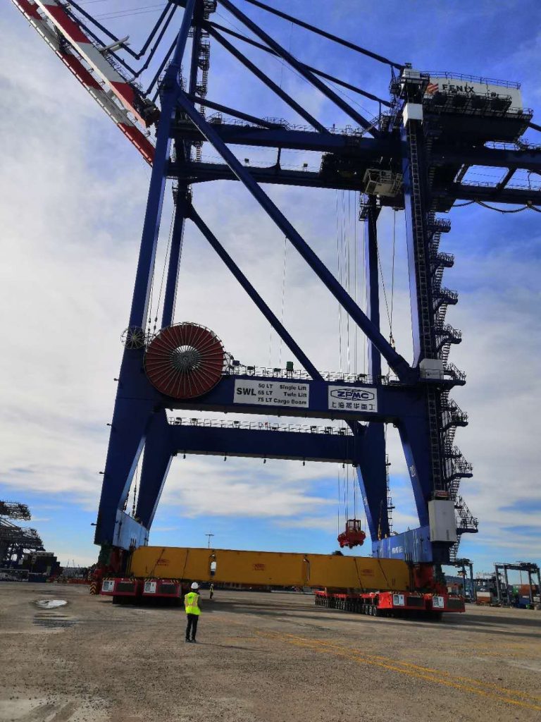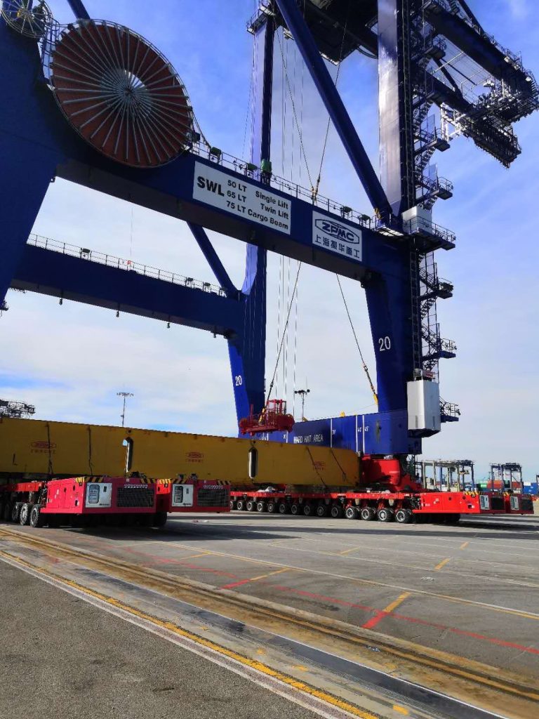 经过数天连夜奋战,拆车,拼车,码头间长距离转运,再拼车,拼装分载梁,今天新码头的第一台新桥吊终于转运成功,还有几台要运